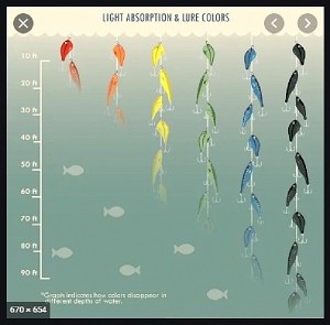 The distance from a fish to the lure under water also has the same effect on color visibility as water depth.